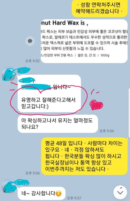 왁싱 소개에서 소개로 이어지고